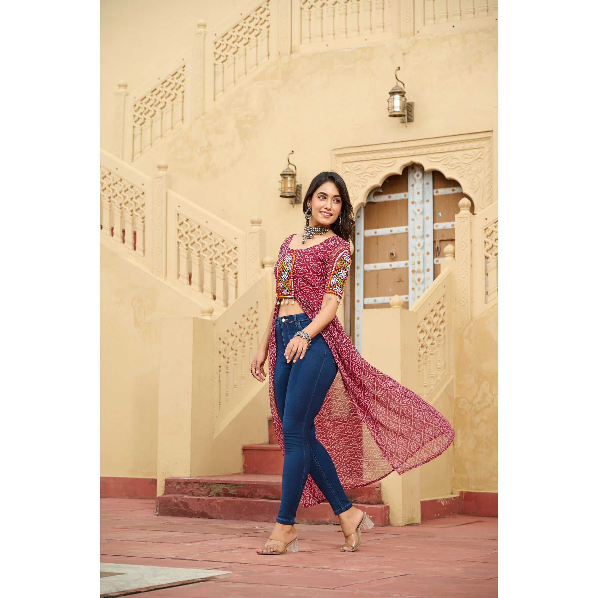ππ» *FABRIC & WORK :-* Bandhani Print work with kutchi patchework in Faux Georgette.