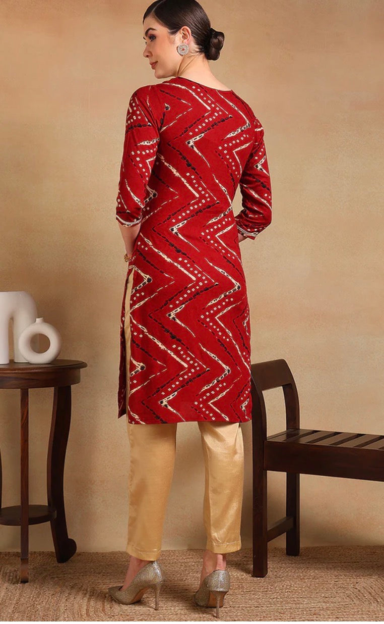 Red Viscose Rayon Chevron Printed Straight Kurta